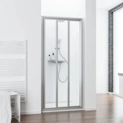 Die dreiteilige Duschtür wird flexibel und platzsparend zur Seite geschoben, sodass sich die Duschkabine auch wunderbar für kleine Bäder eignet.