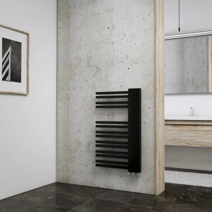 Der Schulte Design-Heizkörper Bologna 81 cm x 50 cm Anthrazit Version Rechts benötigt für die Raumerwärmung nur einen geringen Energieverbrauch. Durch das moderne Leitersprossen-Design sorgt er für trockene und aufgewärmte Handtücher und bietet genügend Platz, um diese bequem aufzuhängen.