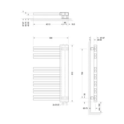 Die neue Wandhalterung ist von 4,5 cm – 5,5 cm verstellbar. Der Heizkörper Bologna ist nicht drehbar. Dies ist die Version rechts.
