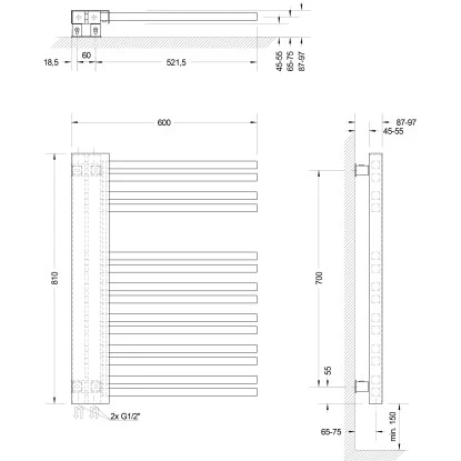 Die neue Wandhalterung ist von 4,5 cm – 5,5 cm verstellbar. Der Heizkörper Bologna ist nicht drehbar. Dies ist die Version links.