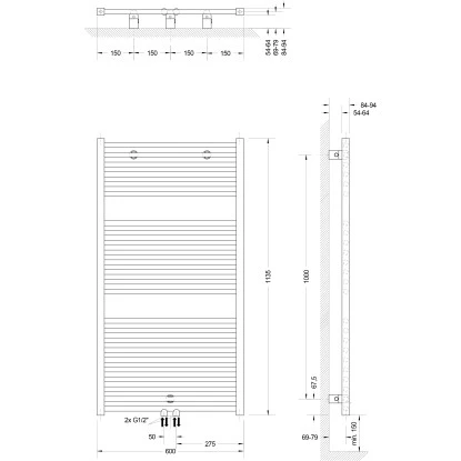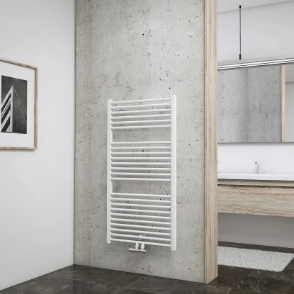 Die maximale Betriebtemperatur beträgt +95 °C. Im Lieferumfang ist die Wandbefestigung mit Schrauben für massive Wände enthalten, sowie Entlüftungs- und Blindstopfen. Der Designheizkörper verfügt über einen idealen Rohrabstand zum Aufhängen von Handtüchern.