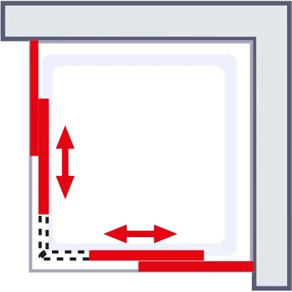 Das nach DIN Norm gefertigte Glas zeichnet sich insbesondere durch seine gute Stabilität aus, dank welcher es auch Belastungen durch Schläge, Stöße, Biegungen sowie Temperaturschwankungen problemlos standhält. Außerdem überzeugt die Duschabtrennung mit dominanten, silberfarbenen Aluminiumprofilen, welche eine zuverlässige Dichtigkeit gegen Spritzwasser sowie ein ruhiges Laufverhalten gewährleisten. Der vierteilige Eckeinstieg mit Schiebetüren punktet darüber hinaus mit seiner Flexibilität. Je nach Einbausituation haben Sie die Möglichkeit, die Profile individuell anzupassen. Ziehen Sie hierfür einfach die Aluminiumprofile ein Stück weit auseinander, bzw. schieben Sie sie zusammen.