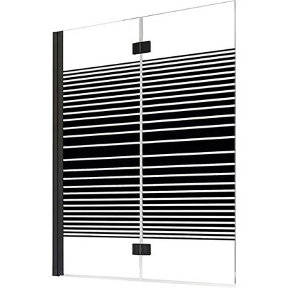 Der formschöne Schulte ExpressPlus Badewannenaufsatz Komfort Sicherheitsglas (ESG) Mattschwarz 112 x 140 cm besteht aus zwei Echtglaselementen (ESG), welche einen hochwertigen sowie optisch ansprechenden Spritzschutz bilden. Die Aluminiumprofile in modernem Mattschwarz geben der Badewannenfaltwand zudem einen sicheren Halt. Die einzelnen Elemente sind mit einem modernen Querstreifen-Dekor versehen und schenken Ihnen somit Privatsphäre. Darüber hinaus kann die Faltwand flexibel nach innen gefaltet werden. Dies vereinfacht zum einen die tägliche Handhabung und zum anderen die Reinigung und Pflege der Duschwand für die Badewanne. Montage: Bohren oder Klebemontage mit optionalen Klebeset (nicht im Lieferumfang enthalten) möglich.