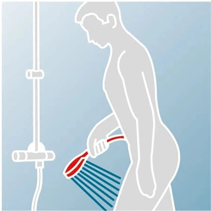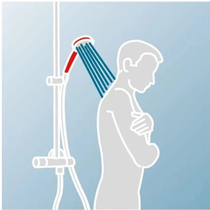 Die große, eckige Tellerkopfbrause simuliert eine angenehme Regendusche und lädt zum Entspannen ein, während die klassische Handbrause höhenverstellbar ist. Die Bedienung gelingt ganz einfach über Drücken oder Drehen der Elemente. Darüber hinaus bietet die praktische, integrierte Ablage ausreichend Platz für Ihre Dusch- und Pflegeprodukte, sodass Sie diese stets griffbereit haben. Der Korpus besteht aus Messing mit verchromter Oberfläche.