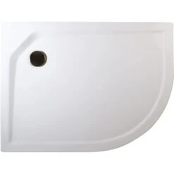 Die flache asymmetrische Rundduschwanne hat die Maße 75 cm x 90 cm und ist Alpinweiß.