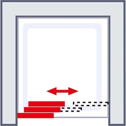 Die 3-teilige Gleittür besteht aus 3 schiebbaren Türelementen und öffnet platzsparend nach links oder rechts. 6 Gleitrollen garantieren ein leichtgängiges Öffnen und Schließen der Tür. Die beweglichen Elemente können zur einfachen Reinigung abgeklappt werden.