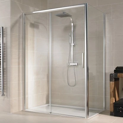 Die Schulte Schiebetür 2-teilig für Seitenwand Kristall/Trend öffnet platzsparend und wird ohne unteres Profil geliefert. So erhalten Sie einen freien Einstieg ohne lästige Stolperfalle. Der elegante, flache Griff ermöglicht ein optimales Öffnen der Tür, während der durchgehende Magnetverschluss der Schiebetür ein perfektes Abdichten garantiert. Die Schiebetür Kristall/Trend ist für die Montage mit einer gleich hohen Seitenwand der Serie Kristall/Trend geeignet.